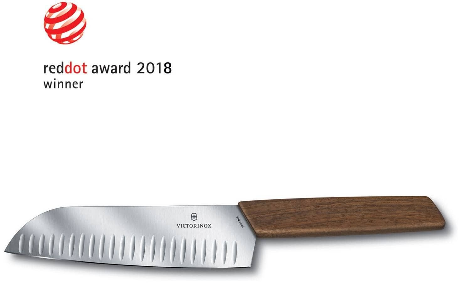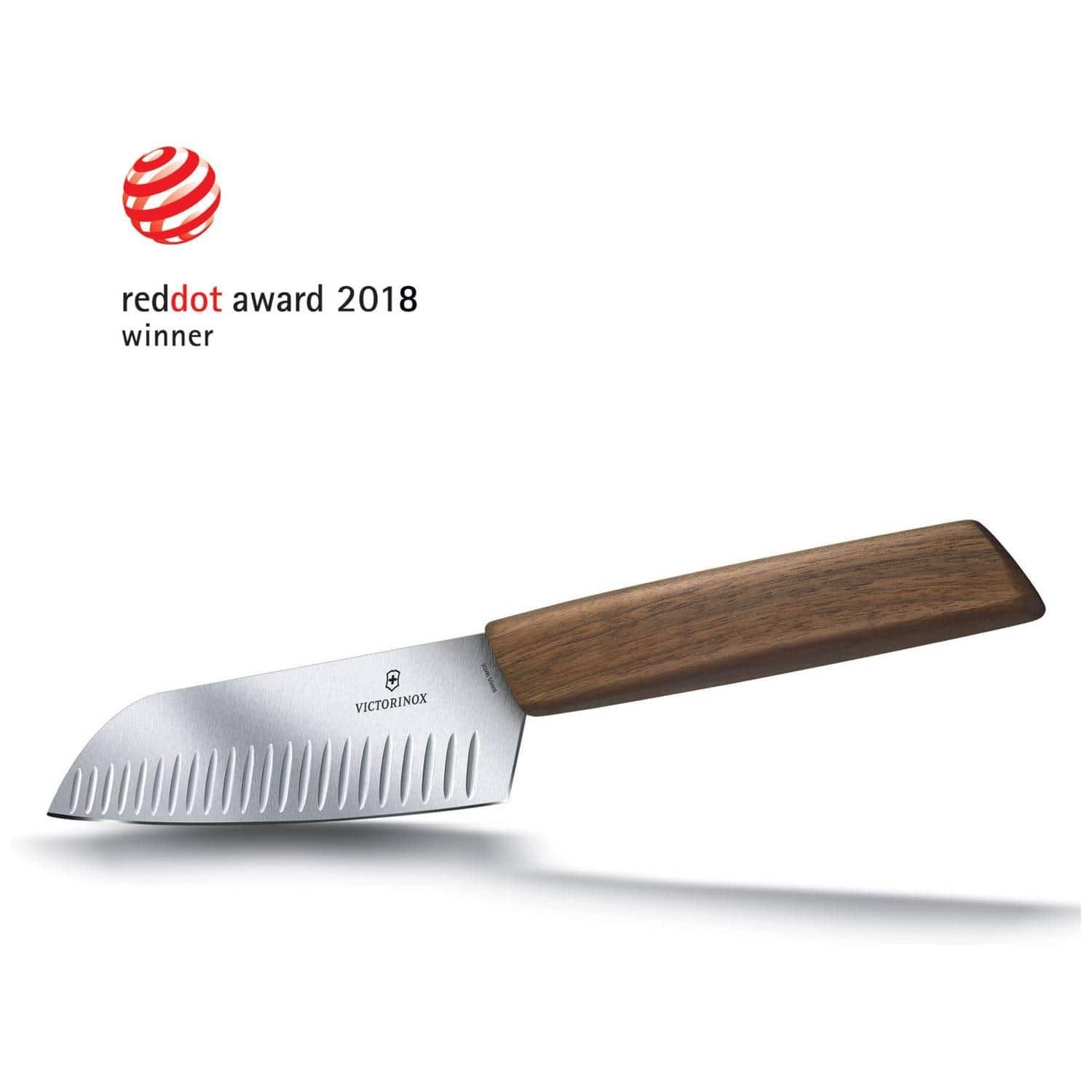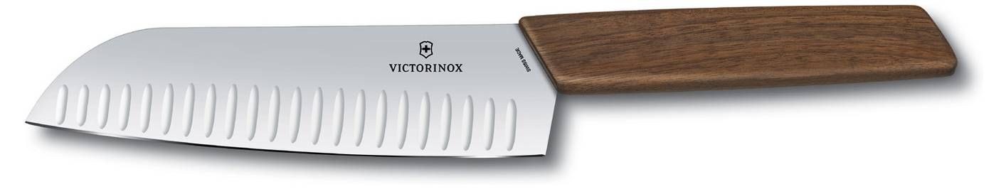 Το μαχαίρι Santoku της Ελβετικής εταιρίας Victorinox , είναι το μαχαίρι γενικής χρήσης που στα γιαπωνέζικα σημαίνει "τρεις αρετές", αφού μπορεί να χρησιμοποιηθεί για κρέας, ψάρι, και λαχανικά. Η μύτη του είναι πιο γαμψή από το μαχαίρι σεφ, ενώ το μήκος της λάμας του είναι ιδανικό για το ψιλοκόψιμο ακόμα και στον πάγκο της οικιακής κουζίνας, όπου ο χώρος είναι συνήθως πιο περιορισμένος. Το ελαφρύ του βάρος το κάνει άνετο και ξεκούραστο ακόμα και μετά από πολύωρη χρήση. Η σειρά Swiss Modern της Victorinox αποτελεί τον συνδυασμό του στυλ & της αποστελεσματικότητας. Κάθε μαχαίρι της σειράς αποτελείται από ανθεκτικό στη φθορά ανοξείδωτο ατσάλι και συνδυάζεται με μια πλούσια σε ίνες, μοναδική λαβή από ξύλο ευρωπαϊκής καρυδιάς. Εργονομικά σχεδιασμένο για απόλυτη άνεση και ταυτόχρονα ελαφρύ στο χέρι αυτό το μαχαίρι αποτελεί ό,τι πιο σύγχρονο έχει να παρουσιάσει η Victorinox στα εργαλεία κουζίνας.