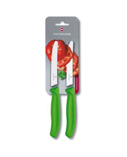 Μαχαιράκια κουζίνας 11cm στρογγυλά οδοντωτά πράσινα Σετ 2 τμχ Swiss Classic -6.7836.L114B- Victorinox