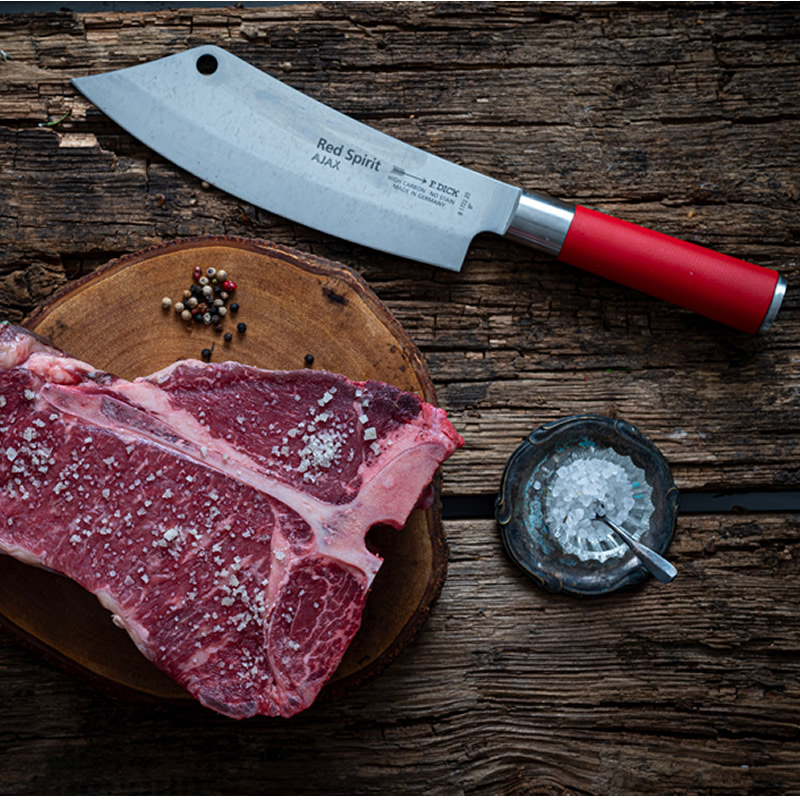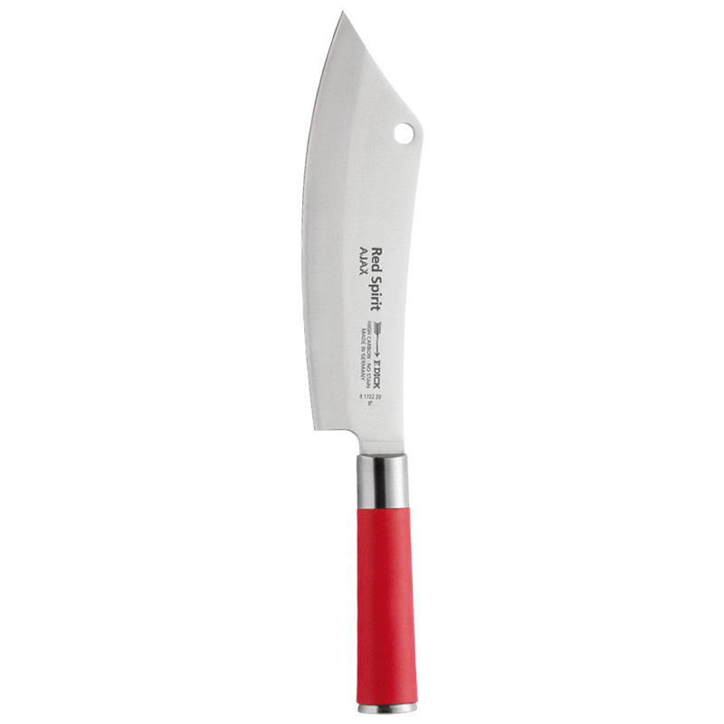Το μαχαίρι σεφ AJAX της σειράς Red Spirit της F. DICK είναι εμπνευσμένο από την ασιατική παράδοση και συνδυάζει την εξαιρετική κόψη με την εργονομική ευκολία χρήσης. Η στρογγυλή λαβή ασιατικού τύπου προσφέρει άνεση και σταθερότητα, ακόμα και κατά την εντατική επαγγελματική χρήση, ενώ η εξαιρετικά λεπτή κόψη εξασφαλίζει απόλυτη ακρίβεια.