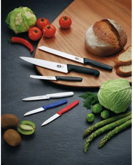 19749 (code) Μαχαίρι γενικής χρήσης 15cm Fibrox 5.2003.15 της Ελβετικής εταιρίας Victorinox, είναι ένα εξαιρετικά εύχρηστο μαχαίρι, αφού μπορείτε να το χρησιμοποιήσετε για να κόψετε μεγάλες μερίδες, να ψιλοκόψετε ή να τεμαχίσετε από λαχανικά και φρούτα μέχρι κρέας και ψάρι. Η φαρδιά του λάμα και η κυρτή του λεπίδα το κάνουν ιδανικό για γρήγορο ψιλοκόψιμο μέσω της γνωστής λικνιστής κίνησης. Το πάχος της λάμας στη ράχη είναι αρκετό για να σας δώσει το βάρος και τη δύναμη που χρειάζεστε, ενώ το μήκος της καλύπτει ένα μεγάλο εύρος καθημερινών εργασιών. Τα προϊόντα Victorinox είναι πρακτικά, έχουν διάρκεια και λειτουργική αισθητική.