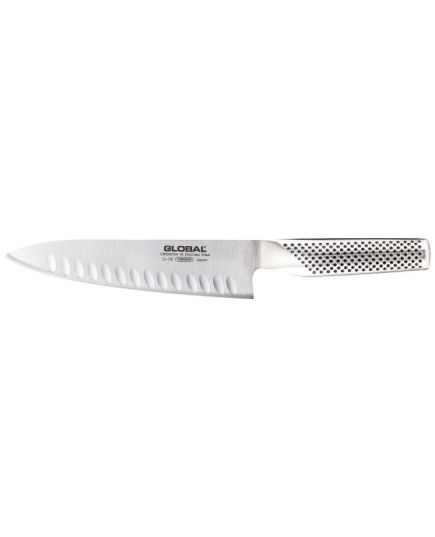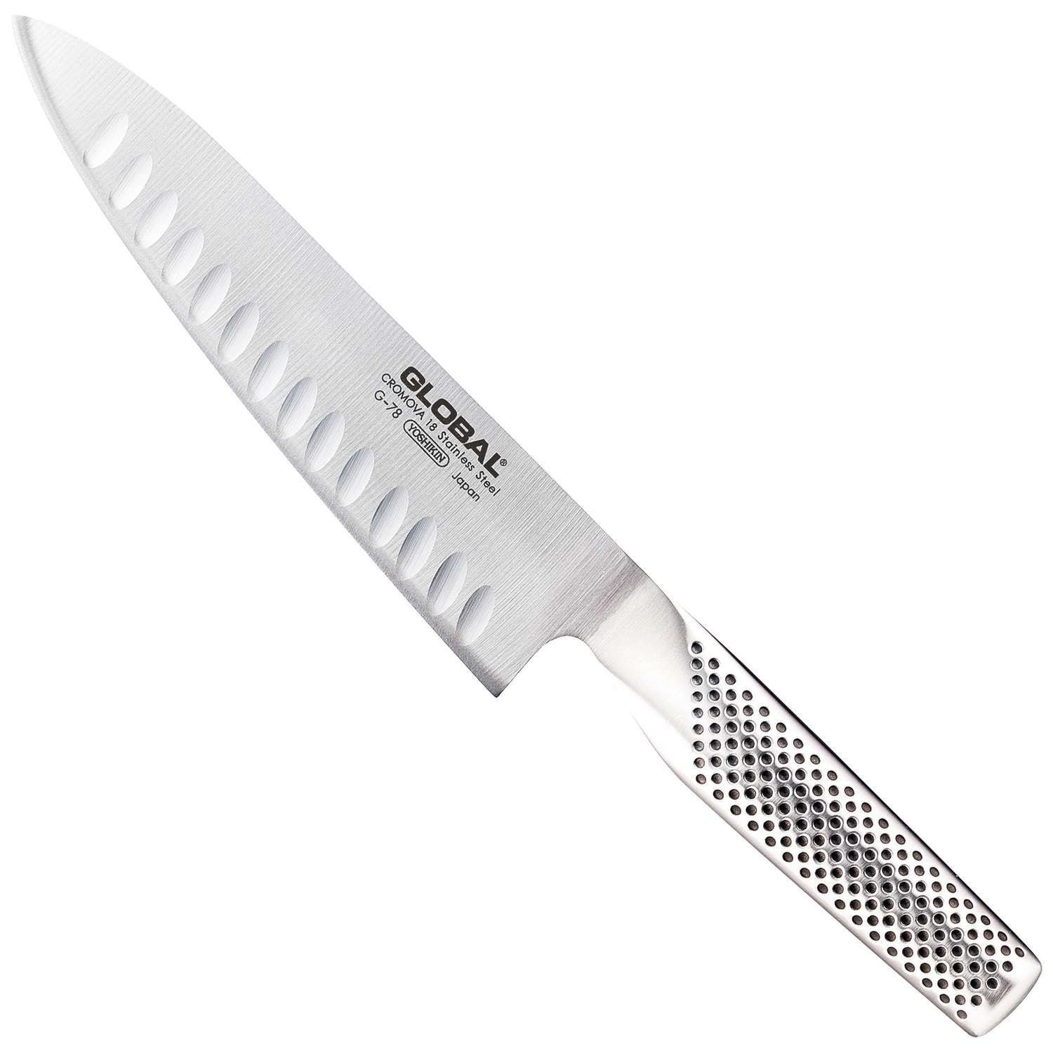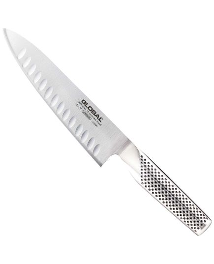 Ιδανικό για ακριβείς κοπές και τεμαχισμό, το μαχαίρι σεφ με αυλακώσεις G-78 της Global μπορεί να εκτελέσει οποιαδήποτε εργασία στην κουζίνα.