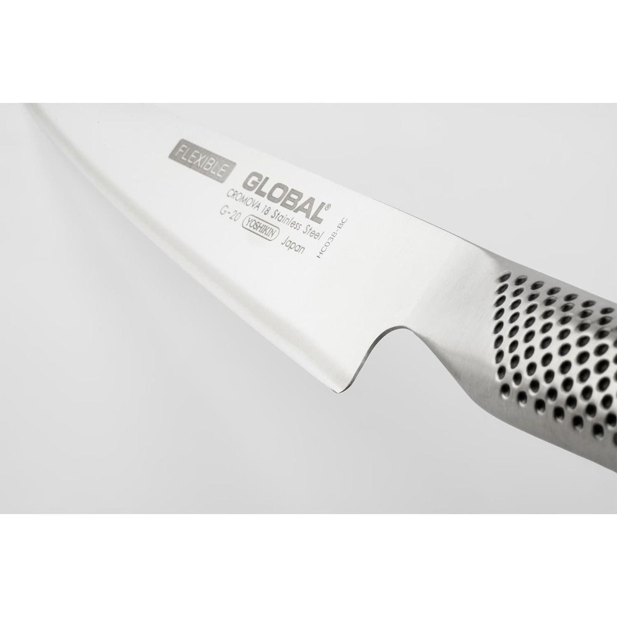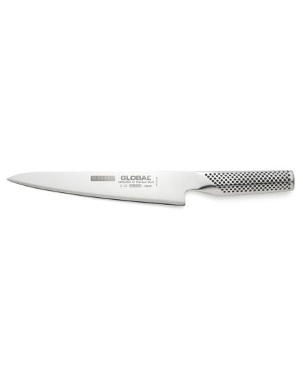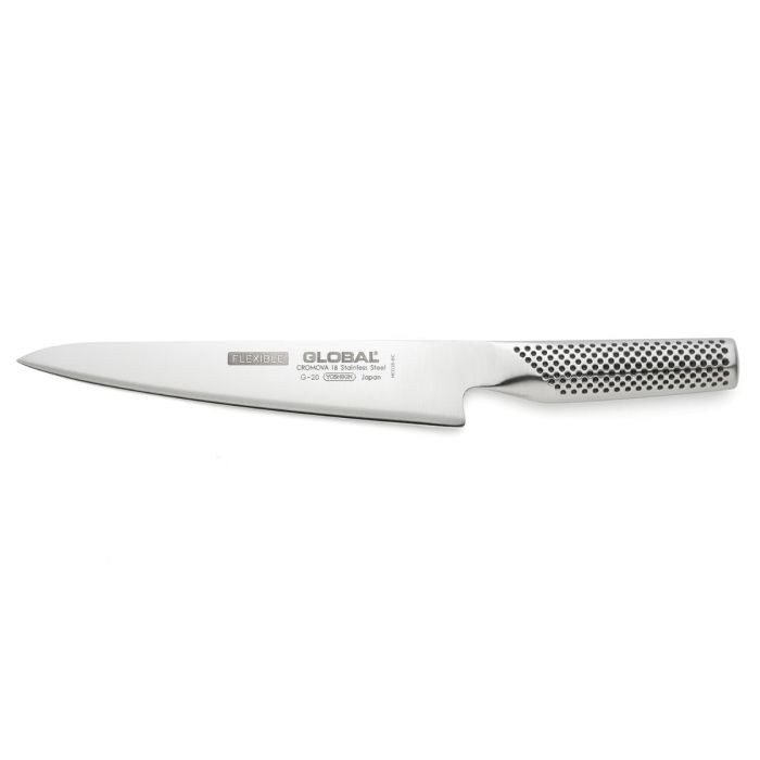 Το μαχαίρι G-20 της Global είναι ιδανικό για το φιλετάρισμα κρέατος, αλλά και ψαριού. Η ευκαμψία της λεπίδας κόβει εύκολα κατά μήκος της ραχοκοκαλιάς και κάτω από το δέρμα των ψαριών