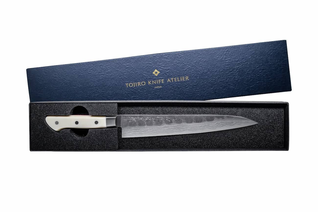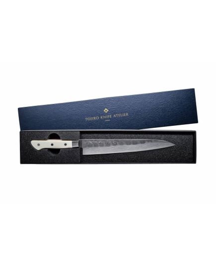 Ένα μαχαίρι αριστούργημα του Ιαπωνικού οίκου Tojiro . Χειροποίητο από έμπειρους Ιάπωνες τεχνίτες, με τα χαρακτηριστικά ιδεογράμματα χαραγμένα στη λάμα του, που αποτελούν απόδειξη οτι στα χέρια σας κρατάτε ένα αυθεντικό Ιαπωνικό παραδοσιακό μαχαίρι.