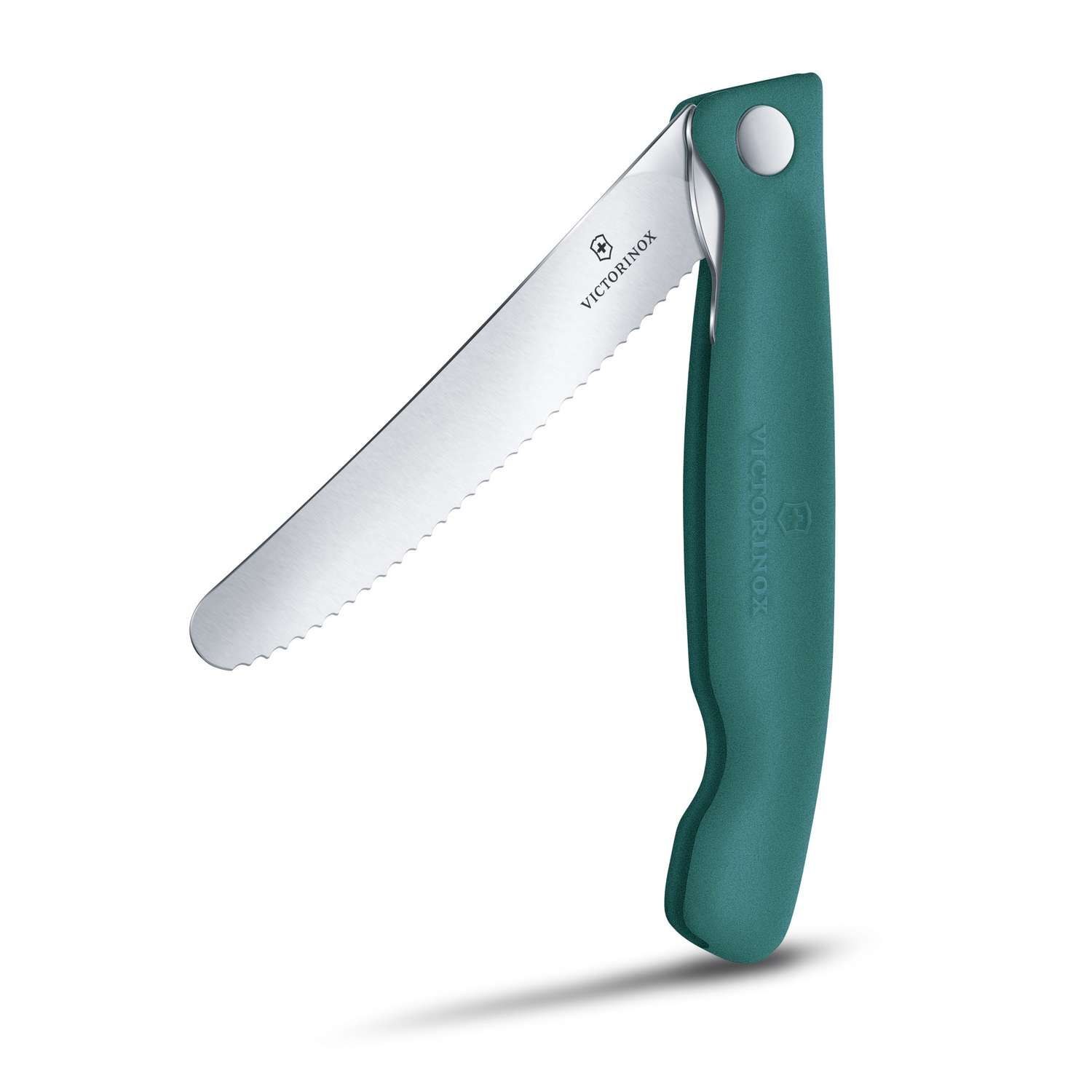 Μαχαίρι κουζίνας 11cm στρογγυλό οδοντωτό πράσινη λαβή αναδιπλούμενο Swiss Classic -6.7834.FC1- Victorinox