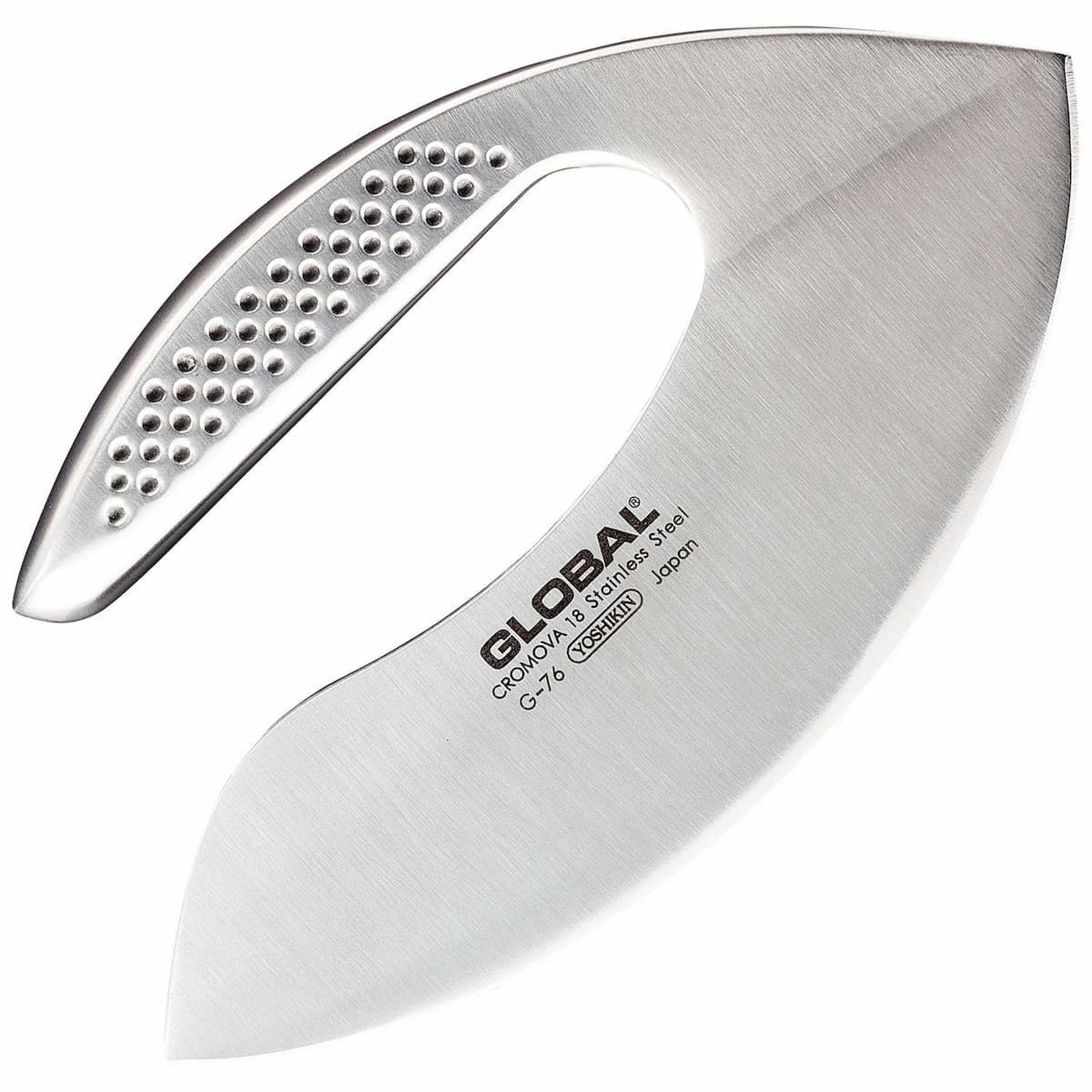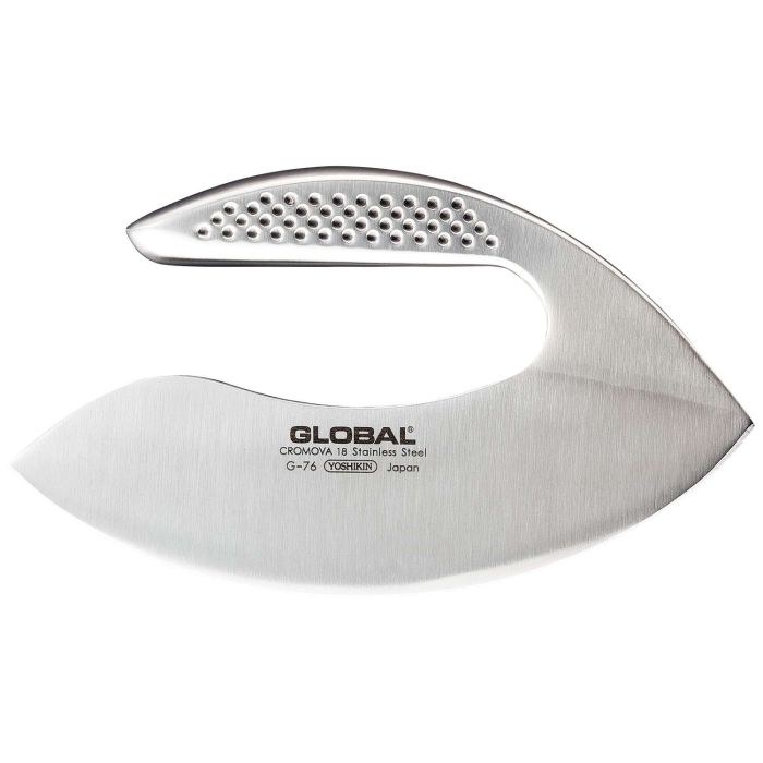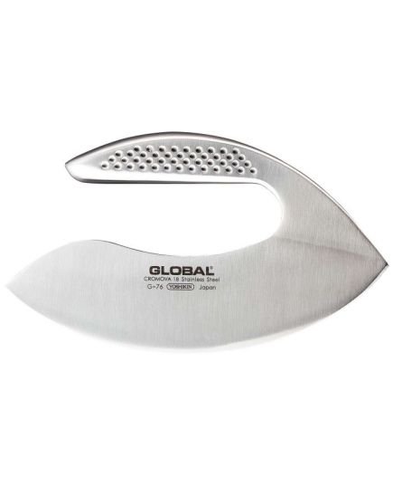 57260 (code) Με φαρδιά, κοφτερή, καμπυλωτή λεπίδα, το herb chopper G-76 της Global είναι ιδανικό για να ψιλοκόψετε μαϊντανό, φρέσκα βότανα, κρεμμύδια, ενώ μπορεί επίσης να χρησιμοποιηθεί για να κόψετε σε κύβους το κρέας. Αυτό το μαγειρικό εργαλείο είναι απαραίτητο για κάθε σεφ.