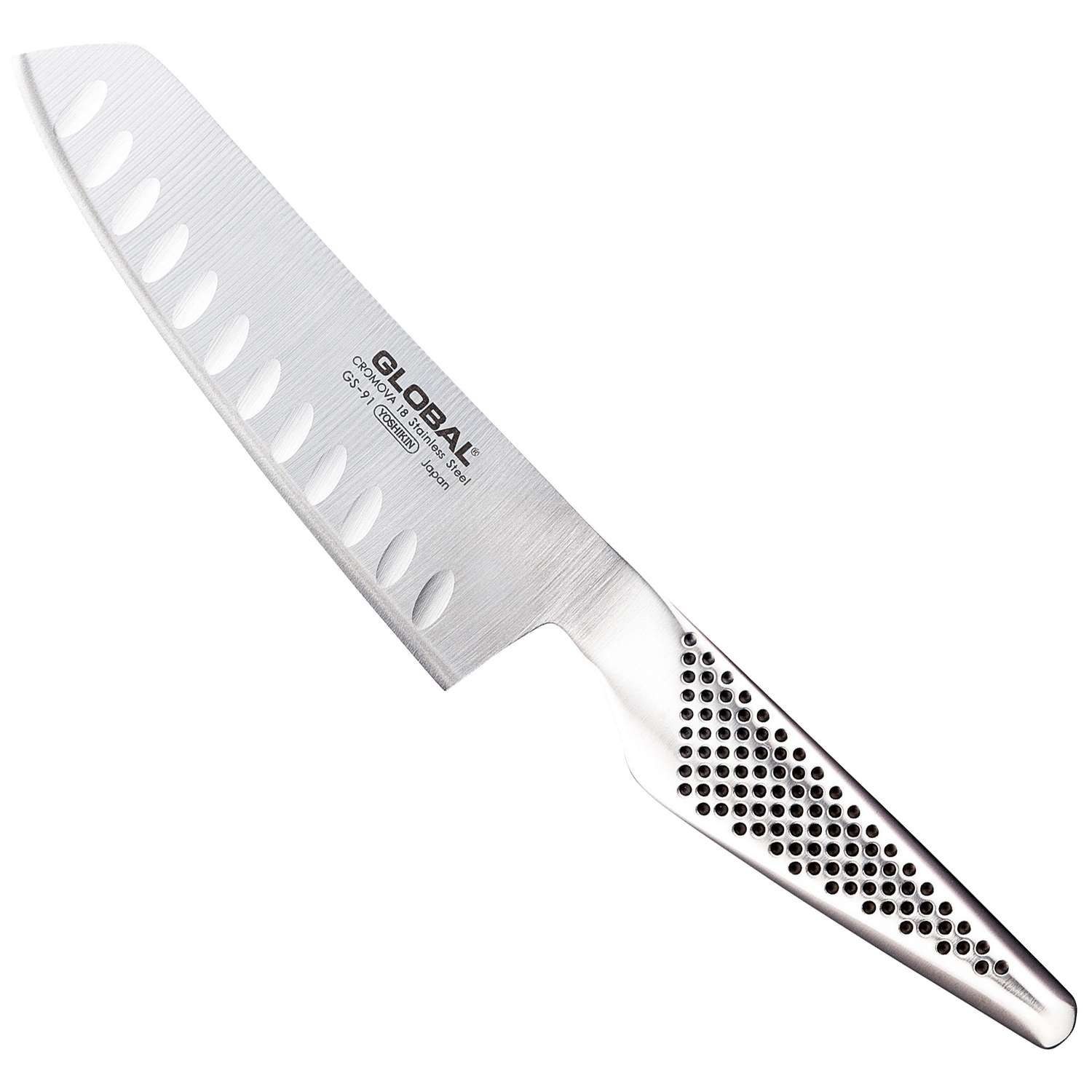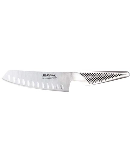 Το GS-91 της Global είναι ένα μαχαίρι με αυλακώσεις στο κλασικό ιαπωνικό στυλ μαχαιριών λαχανικών. Είναι ιδανικό για την κοπή λαχανικών από μαρούλια, κρεμμύδια, λάχανα και αγγούρια. Εάν είστε χορτοφάγος ή ακολουθείτε έναν υγιεινό τρόπο διατροφής, τότε αυτό το μαχαίρι είναι ιδανικό για να κόβετε και να ετοιμάζετε τα πάντα. Οι αυλακώσεις αποτρέπουν την προσκόλληση των κομματιών στη λεπίδα, καθώς κατά την κοπή συλλέγονται θύλακες αέρα στην αυλακωτή περιοχή του μαχαιριού που εμποδίζουν τα λαχανικά να κολλήσουν