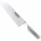 57245 (code) Αυτό το πανέμορφο μαχαίρι Santoku 18 εκατοστών (G-80) από την Global διαθέτει λεπίδα με αυλακώσεις, αποτρέποντας τα υλικά να κολλούν στη λεπίδα καθώς κόβετε. Είναι ένα πολύ καλό μαχαίρι για όλες τις χρήσεις που πρέπει να έχετε στην κουζίνα σας. Το μαχαίρι Santoku είναι ένα ευέλικτο μαχαίρι κουζίνας που προέρχεται από την Ιαπωνία και μπορεί να χρησιμοποιηθεί για κρέας, ψάρι και λαχανικά. Santoku είναι μια ιαπωνική λέξη που σημαίνει «τρεις τρόποι» και χρησιμοποιείται για να περιγράψει τις τρεις εργασίες κοπής για τις οποίες είναι σχεδιασμένο το μαχαίρι: κόψιμο σε φέτες, κομματάκια και τεμαχισμό. Η λεπίδα του μαχαιριού Santoku έχει συνήθως ελαφρώς κυρτή άκρη, επιτρέποντας μια πιο αποτελεσματική κίνηση κοπής. Τα μαχαίρια Santoku είναι γνωστά για την ισορροπία τους, την κοφτερή τους επιφάνεια και την ικανότητά τους να χειρίζονται με ευκολία διάφορες εργασίες στην κουζίνα.
