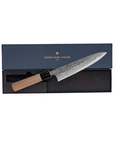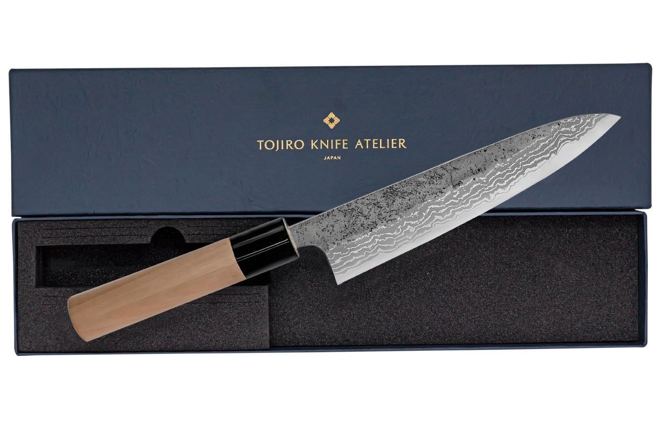 Ένα μαχαίρι αριστούργημα του Ιαπωνικού οίκου Tojiro . Χειροποίητο από έμπειρους Ιάπωνες τεχνίτες, με τα χαρακτηριστικά ιδεογράμματα χαραγμένα στη λάμα του, που αποτελούν απόδειξη οτι στα χέρια σας κρατάτε ένα αυθεντικό Ιαπωνικό παραδοσιακό μαχαίρι.