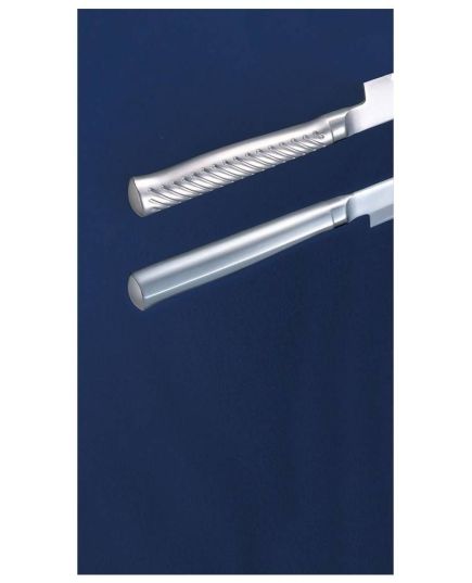 Το κράμα μετάλλου σε αυτό το μαχαίρι αποτελείται από ανοξείδωτο ατσάλι εμπλουτισμένο με μολυβδαίνιο και βανάδιο, μια πρόσμειξη που αυξάνει τη σκληρότητα του μετάλλου, την αντοχή του και την αντίσταση σε διαβρώσεις. Αν και παραδοσιακά τα γιαπωνέζικα μαχαίρια φτιάχνονται από χάλυβα υψηλής περιεκτικότητας σε άνθρακα που όμως απαιτεί καθημερινή φροντίδα και προσοχή, η νέα αυτή γενιά γιαπωνέζικου μετάλλου και οι τεχνικές της Tojiro δημιουργούν έναν εξαιρετικό συνδυασμό σκληρότητας και αντοχής. Λεπίδα κοφτερή και διάρκεια τροχίσματος, χωρίς απαιτητική καθημερινή φροντίδα. Το ιδανικό μέταλλο για να κάνετε το πρώτο σας βήμα στο χώρο των παραδοσιακών γιαπωνέζικων μαχαιριών, καθώς και για ξέγνοιαστή πρακτική καθημερινή χρήση.