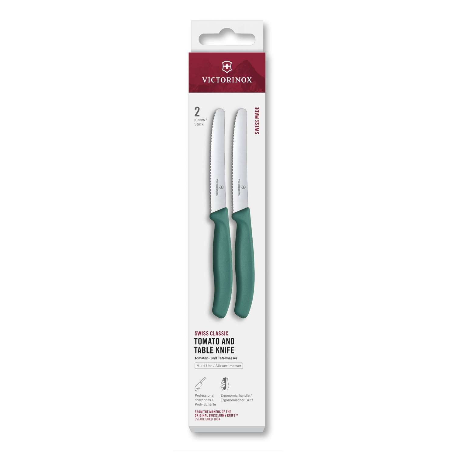 Μαχαίρια κουζίνας 11cm στρογγυλά οδοντωτά πράσινη λαβή σετ 2 τμχ Swiss Classic 6.7834.2C1 Victorinox