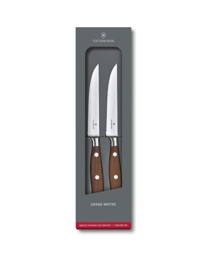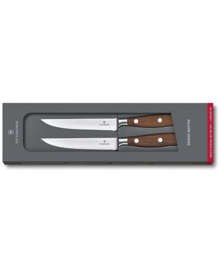 Μαχαίρια steak 12cm oδοντωτα ξύλινη λαβή σετ 2 τμχ σε συσκευασία δώρου Grand Maitre 7.7240.2W Victorinox