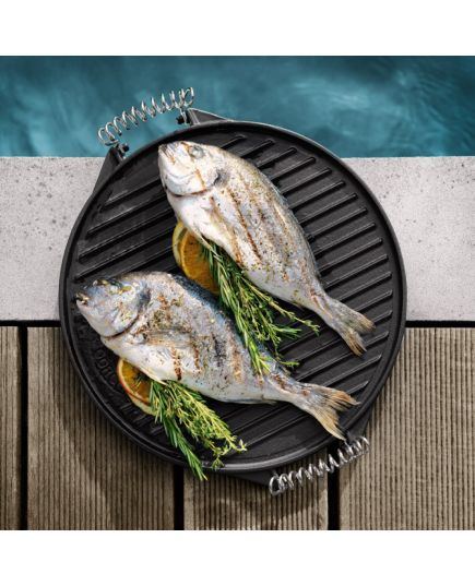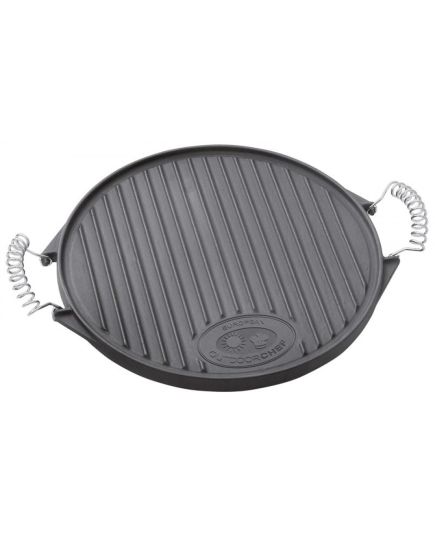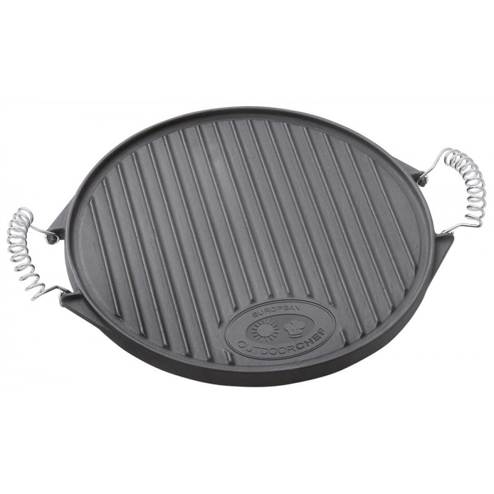 27427 (code) Μαντεμένια Πλάκα Ψησίματος 420- 2 Όψεων Outdoorchef. Η Μαντεμένια Πλάκα ψησίματος 2 όψεων, με ραβδωτή και λεία επιφάνεια προσφέρει την βέλτιστη συγκράτηση και διανομή της θερμότητας. Η πλευρά με τις ραβδώσεις συνίσταται για λουκάνικα, παϊδάκια, ψάρια και η λεία για κρέπες, αυγά, ομελέτες.