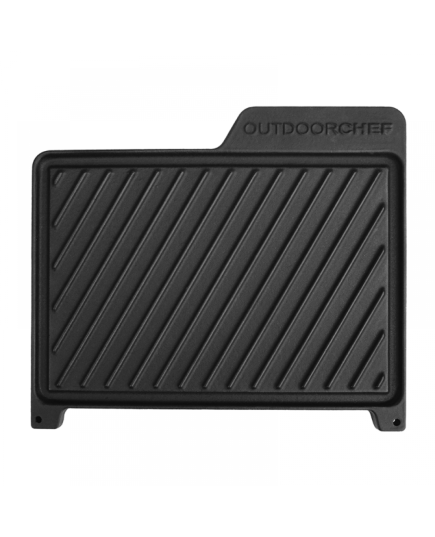 Μαντεμένια πλάκα για τέλεια κατανομή θερμότητας με ραβδωτή και λεία επιφάνεια για πιάτα όπως μπιφτέκια, αυγά, κρέπες κ.λ.π. Ταιριάζει ιδανικά στον καυστήρα μπριζόλας της Lugano.