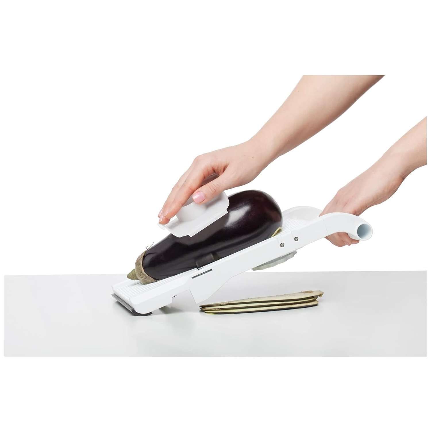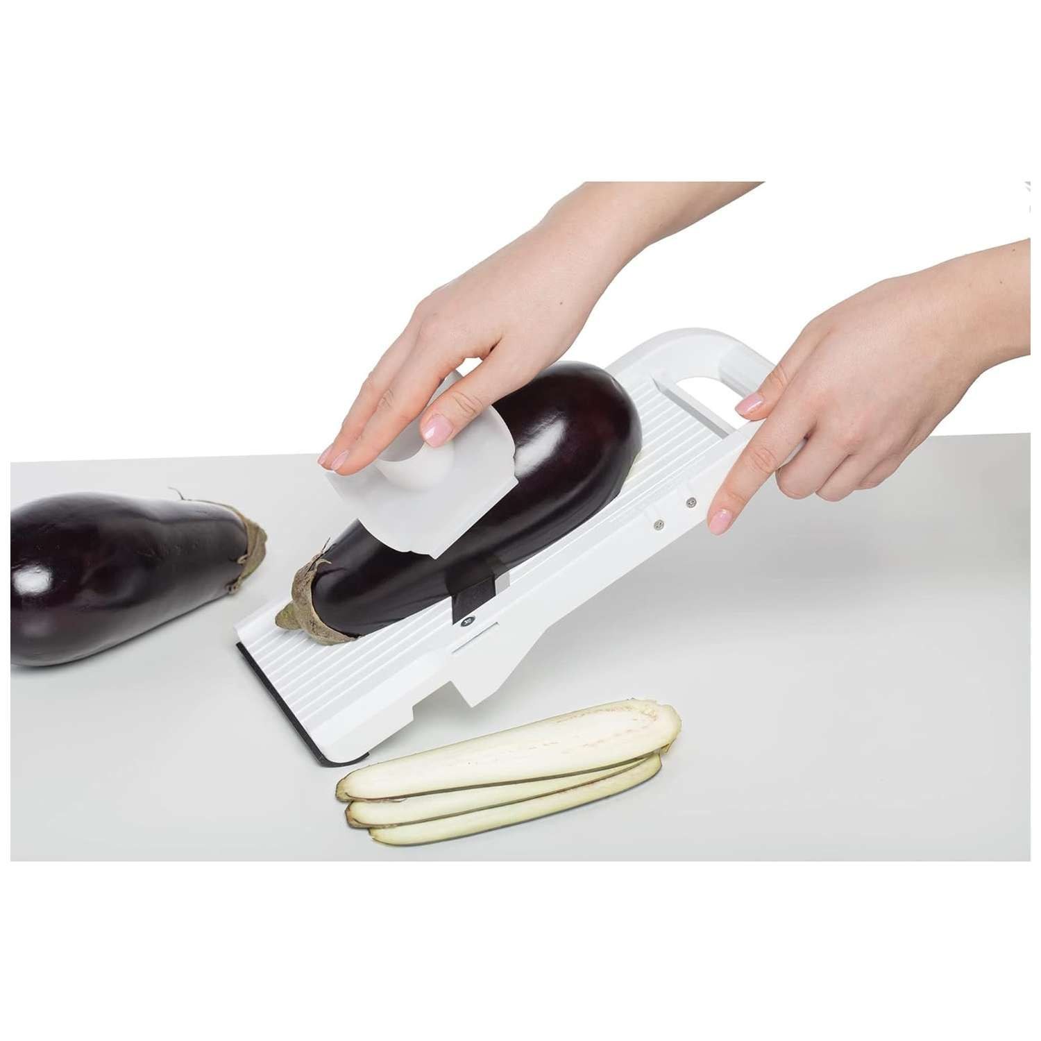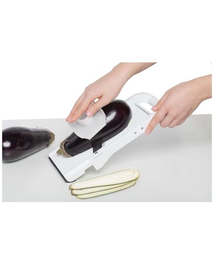 Διαθέτει μια εξαιρετικά αιχμηρή αφαιρούμενη λεπίδα που θα δημιουργήσει ομοιόμορφες φέτες με ευκολία και περιλαμβάνει επίσης προστατευτικό δαχτύλων για την αποφυγή ατυχημάτων ή τραυματισμών.