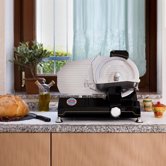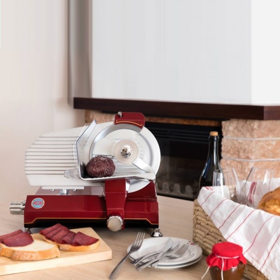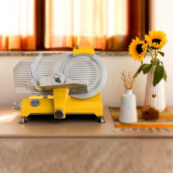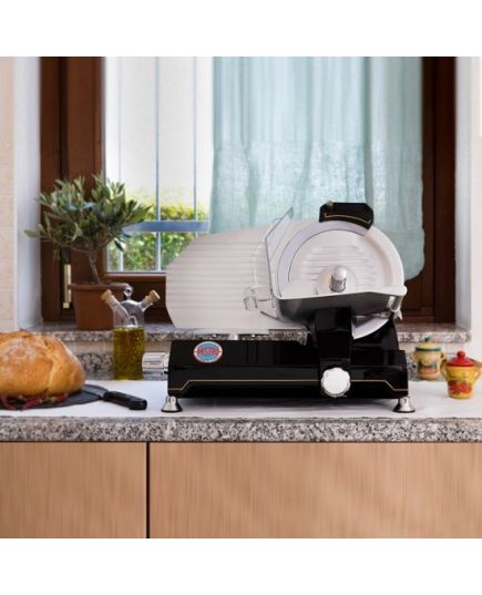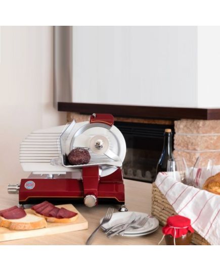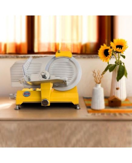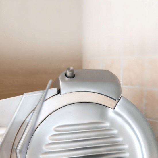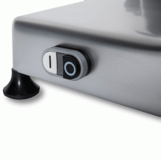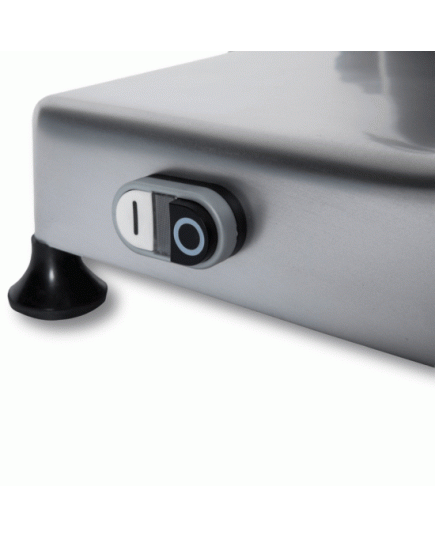 Κατασκευασμένη από ανοδιωμένο αλουμίνιο. Ενσωματωμένο ακονιστήρι με ειδικό προφυλακτήρα που “κρύβει” τη λεπίδα του μαχαιριού. Μπουτόν on/off με ρελέ ασφαλείας. Ιδανικό για πιτσαρίες, εστιατόρια, super market, ξενοδοχεία, mini market.
