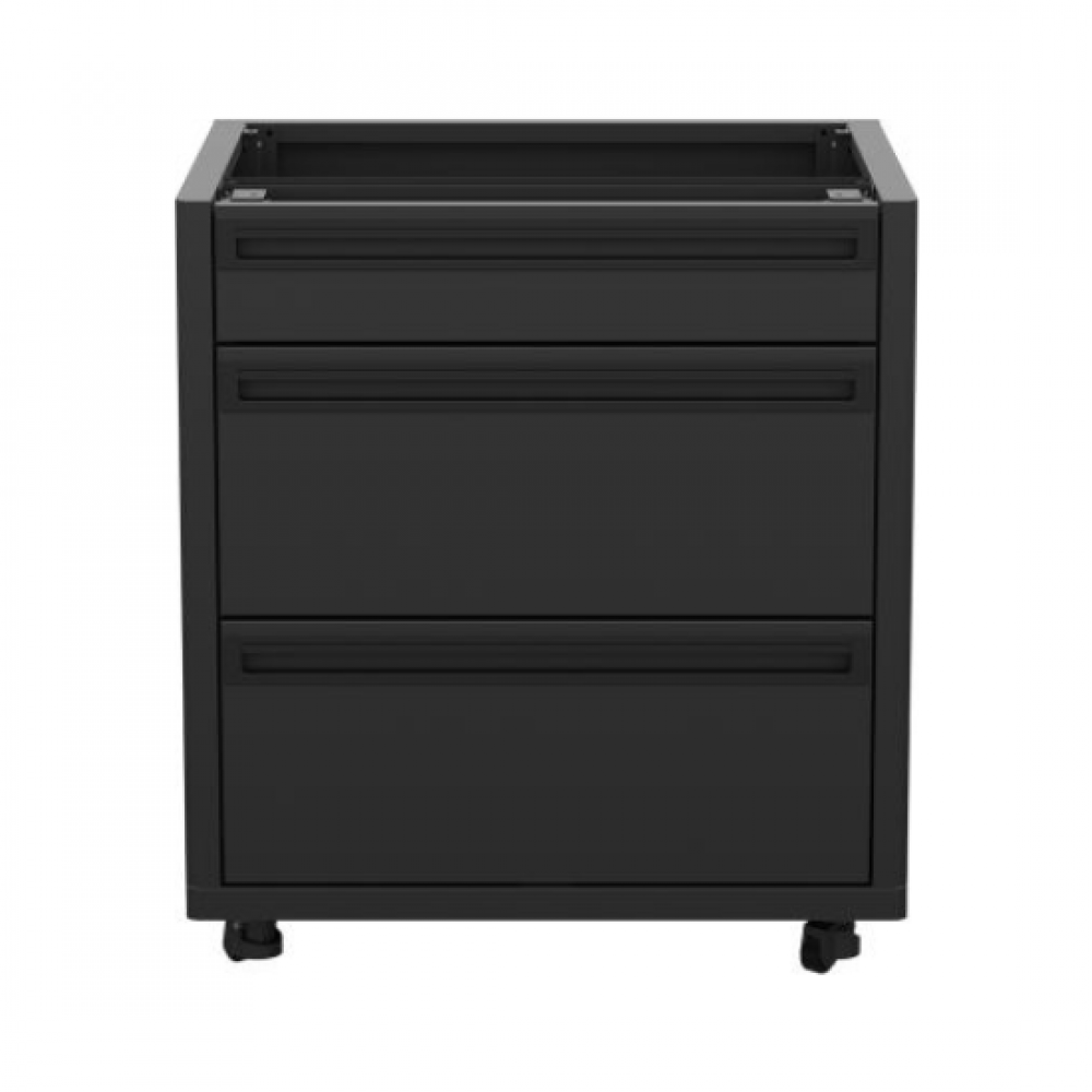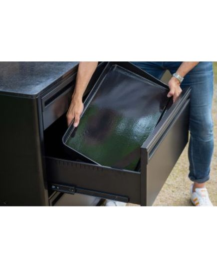 Η μονάδα ντουλαπιού με 3 συρτάρια είναι μέρος του αρθρωτού συστήματος εξωτερικής κουζίνας HEAT και προσφέρει πρακτική οργάνωση και αποθήκευση για κάθε ανάγκη. Τα δύο συρτάρια βαρέως τύπου μπορούν να υποστηρίξουν έως και 25 kg το καθένα, καθιστώντας τα ιδανικά για τη φύλαξη μαντεμένιων σκευών, πλάκες ψησίματος ή κατσαρόλες. Το επάνω συρτάρι είναι ιδανικό για μαχαιροπίρουνα ή μικρά αξεσουάρ μαγειρικής. Η στιβαρή κατασκευή από ανοξείδωτο ατσάλι με μαύρη ηλεκτροστατική βαφή προσφέρει αντοχή και προστασία όλο τον χρόνο. Συνδυάζεται εύκολα με τα υπόλοιπα modules της σειράς HEAT για τη δημιουργία μιας πλήρως προσαρμοσμένης και λειτουργικής εξωτερικής κουζίνας.