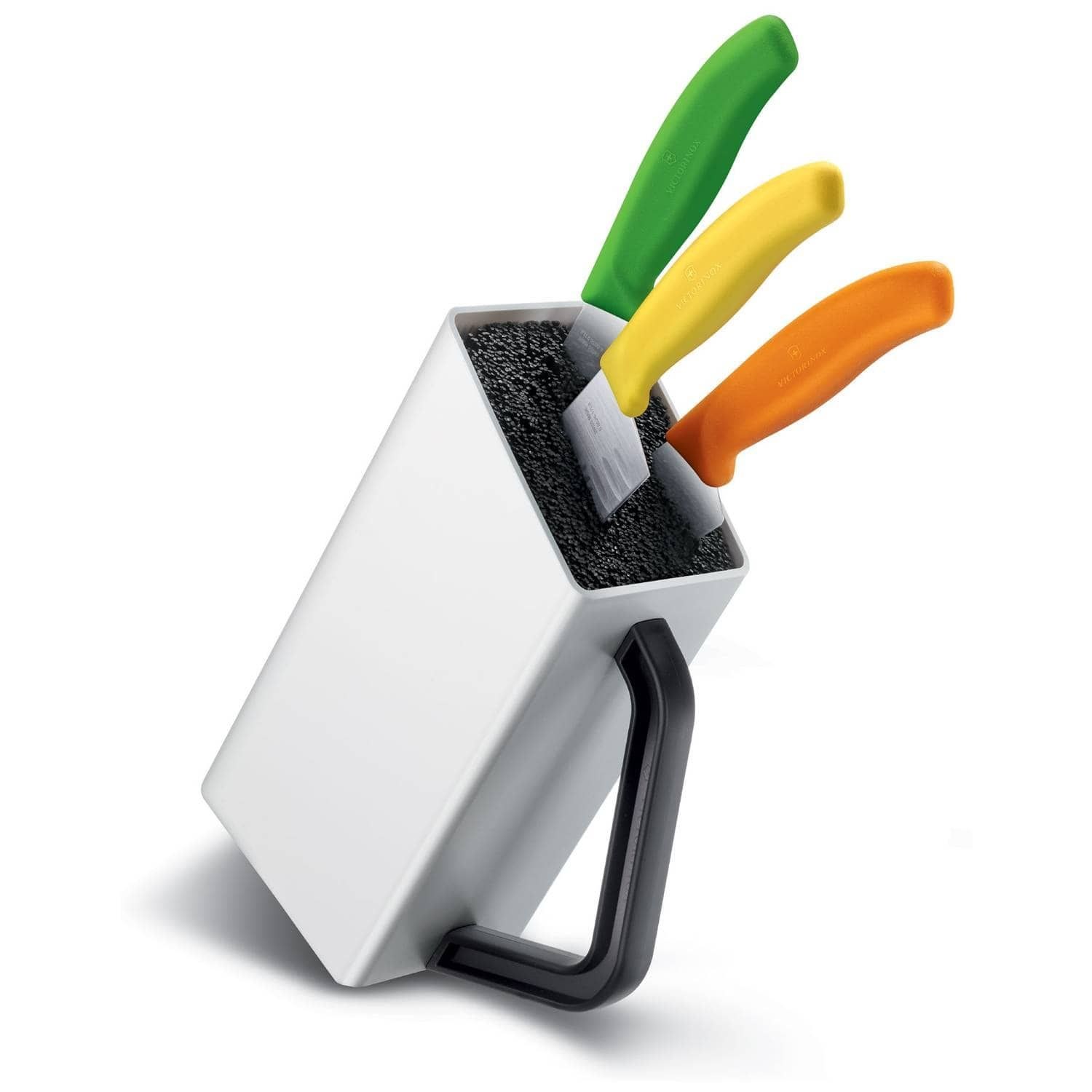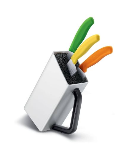 Το μπλοκ αυτό της Victorinox αποτελείται από πολλές ίνες, κάνοντας τη φύλαξη των μαχαιριών πιο εύκολη και πιο πρακτική: δεν υπάρχουν προκαθορισμένες θήκες για κάθε ένα μαχαίρι συγκεκριμένου μήκους και τύπου, οπότε μπορείτε να διαμορφώσετε μόνοι σας τη σύνθεσή του. Μάλιστα, μπορείτε να το χρησιμοποιείτε για να φυλάτε τα μαχαίρια σας και κατά τη διάρκεια της προετοιμασίας του φαγητού, ανάμεσα δηλαδή στις χρήσεις τους. Οταν χρειάζεται, το μπλοκ και το εσωτερικό του μπορεί να καθαριστεί με νερό.