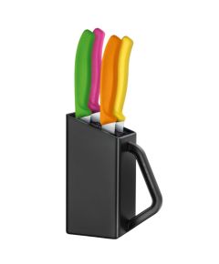 50728 (code) Θήκη μαχαιριών steak μαύρη με ίνες, 4 μαχαίρια με χρωματιστές λαβές 6.7126.4 Victorinox Η υψηλή λειτουργικότητα, η μοναδική αισθητική και η λεπτή εργονομία απαρτίζουν αυτή την πρακτική λύση αποθήκευσης των μαχαιριών σας. Απελευθερώστε τον πάγκο σας και αποθηκεύστε τα μαχαίρια...