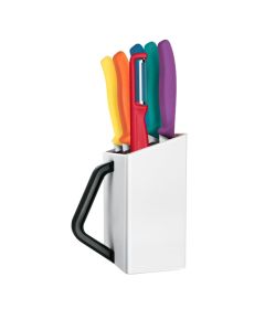 50729 (code) Θήκη μαχαιριών κουζίνας άσπρη με ίνες, 5 μαχαίρια και αποφλοιωτής 6.7127.6L14 Victorinox Αυτό το πρακτικό σετ της Victorinox , διαθέτει 5 μαχαίρια κουζίνας, κατασκευασμένα από υψηλής ποιότητας ανοξείδωτο ατσάλι, με εργονομική λαβή για άνετο κράτημα. Είναι ιδανικά για να...