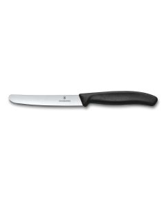 50561 (code) Μαχαίρι κουζίνας 11cm στρογγυλό οδοντωτό μαύρη λαβή Swiss Classic 6.7833 Victorinox Το μαχαίρι πολλαπλών χρήσεων της Ελβετικής εταιρίας Victorinox , είναι ένα εξαιρετικά εύχρηστο μαχαίρι. Ιδανικό για να κόβει, να ξεφλουδίζει και τεμαχίζει μικρά φρούτα και λαχανικά. Διαθέτει...