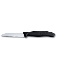 50554 (code) Μαχαίρι κουζίνας 8cm ίσιο οδοντωτό μαύρη λαβή Swiss Classic 6.7433 Victorinox Το μαχαίρι πολλαπλών χρήσεων της Ελβετικής εταιρίας Victorinox , είναι ένα εξαιρετικά εύχρηστο μαχαίρι. Ιδανικό για να κόβει, να ξεφλουδίζει και τεμαχίζει μικρά φρούτα και λαχανικά. Διαθέτει επίσης...