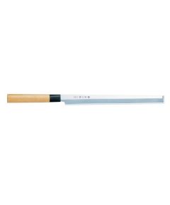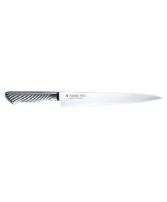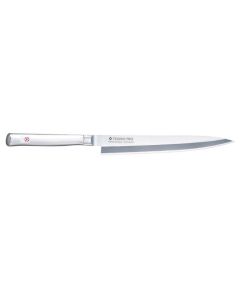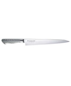 Γνωρίστε Το Tojiro Yanagi Sashimi Shirogami 27cm Hammered - ένα κόσμημα της Iαπωνικής παράδοσης! Με μοναδική σφυρηλατημένη λάμα από ανοξείδωτο ατσάλι Shirogami, χειροποίητο φινίρισμα Kurouchi και λαβή από ξύλο μανόλιας, αυτό το μαχαίρι ξεχωρίζει σε κάθε λεπτομέρεια. Απολαύστε την...