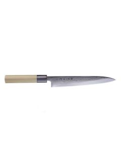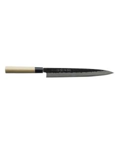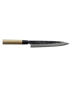 Γνωρίστε Το Tojiro Yanagi Sashimi Shirogami 21cm Hammered - ένα κόσμημα της Iαπωνικής παράδοσης! Με μοναδική σφυρηλατημένη λάμα από ανοξείδωτο ατσάλι Shirogami, χειροποίητο φινίρισμα Kurouchi και λαβή από ξύλο μανόλιας, αυτό το μαχαίρι ξεχωρίζει σε κάθε λεπτομέρεια. Απολαύστε την...