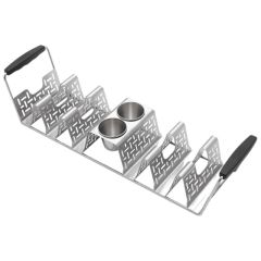 76771 (code) Βάση για Tacos Hot Dog μπαγκέτες 7 θέσεων inox 6119 Υλικό: Ανοξείδωτο Διαστάσεις: 10,5x46cm
