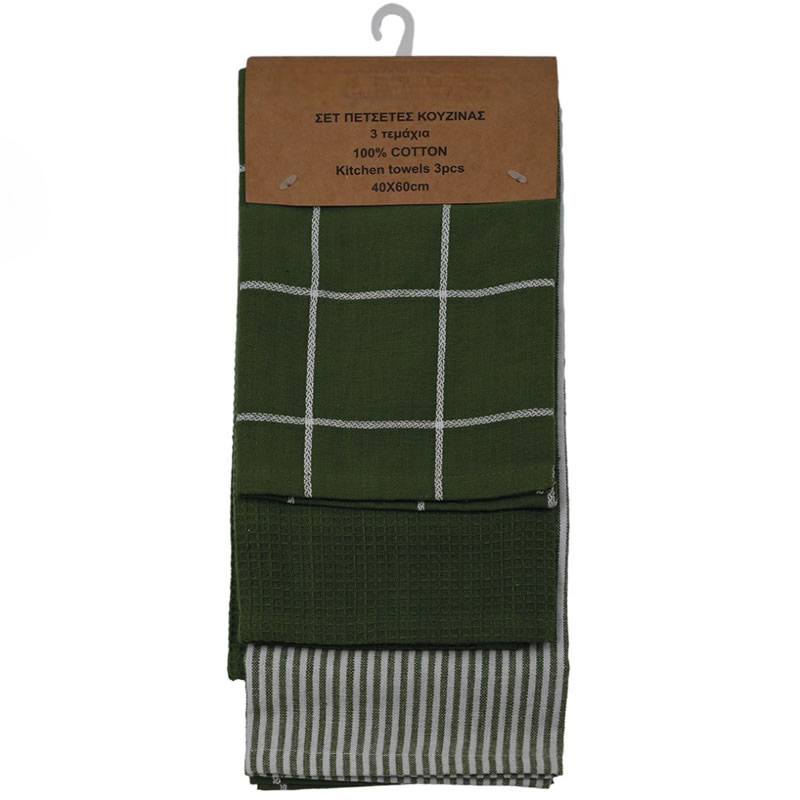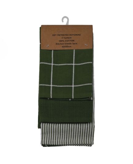 Πετσέτες κουζίνας Σετ 3τμχ 100% βαμβάκι 40x60cm διάφορα χρώματα