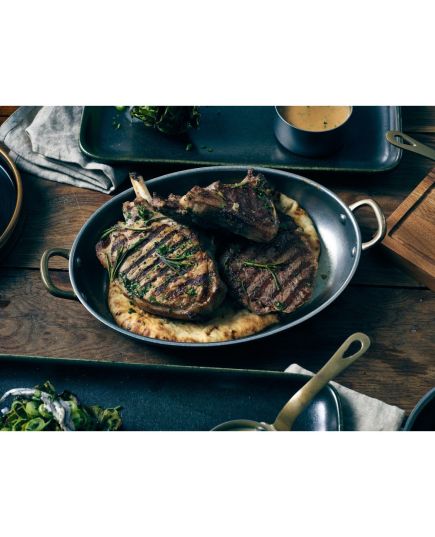 Πιατέλα Ανοξείδωτη βαρέως τύπου σε Vintage matt satin φινίρισμα με μπρούτζινα χερούλια. Οι ωφέλιμες διαστάσεις της πιατέλας είναι 30x21x4 CM. Οι διαστάσεις με τα χερούλια είναι 36x21x4 CM CM