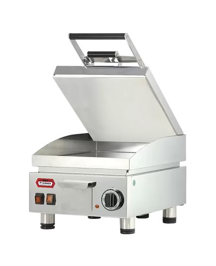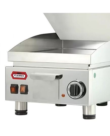 Ηλεκτρικό γκρίλ που θερμαίνεται γρήγορα με εύρος θερμοκρασίας και 0-250 ºC. Η επιφάνειά του είναι κατασκευασμένη από inox και διαθέτει προστατευτικό κάλυμμα για το πιτσίλισμα κατά την διάρκεια του ψησίματος. Με στρογγυλεμένες γωνίες για γρήγορο και εύκολο καθάρισμα. Ο θερμοστάτης είναι με φωτεινή ένδειξη.