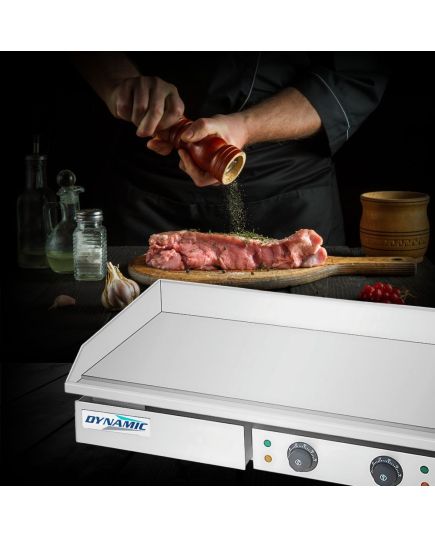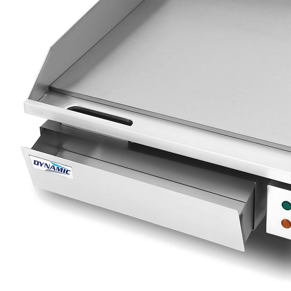 Ηλεκτρικό πλατό χρωμίου EG-820D Dynamic με επιχρωμιωμένη λεία πλάκα ψησίματος 728x400 και συρτάρι συλλογής υπολειμμάτων. Το μηχάνημα είναι κατασκευασμένο από ανοξείδωτο ατσάλι, με κομψό σχεδιασμό και λεία επίπεδη επιφάνεια, όμορφο χρώμα και υλικό ανθεκτικό στη βρωμιά για εύκολο καθάρισμα. Το σύστημα υψηλής απόδοσης και η διατήρηση της απαιτούμενης θερμοκρασίας, εξασφαλίζει ευκολότερο μαγείρεμα.
