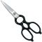 50990 (code) Ψαλίδι κουζίνας FG-3500 σειρά Tojiro Japan. Το ψαλίδι κουζίνας Tojiro (FG-3500) είναι ένα πολύ ευέλικτο εργαλείο για χρήση τόσο στο σπίτι όσο και στην κουζίνα. Μπορείτε να το χρησιμοποιήσετε για να κόψετε σε μερίδες το κοτόπουλο ή να το χρησιμοποιήσετε για πιο ευαίσθητες εργασίες όπως το κόψιμο του σχοινόπρασου για γαρνιτούρα. Είναι εξίσου ιδανικό για κοπή θηραμάτων και ζώων, βότανα, λουλούδια και πολλά άλλα. Το ανοιχτήρι μπουκαλιών στο κέντρο της λαβής λειτουργεί και ως καρυδοσπάστης. Το ψαλίδι κουζίνας Tojiro είναι ένα στιβαρό σκεύος κατασκευασμένο από σφυρήλατο ανοξείδωτο χάλυβα inox με μονοκόμματη κατασκευή. Διαθέτει μία ίσια λεπίδα και μία οδοντωτή λεπίδα για το κόψιμο του δέρματος και των σκληρών κρεάτων. Έχει πλαστική επίστρωση στη λαβή για πιο άνετο κράτημα.