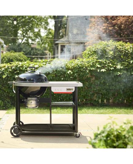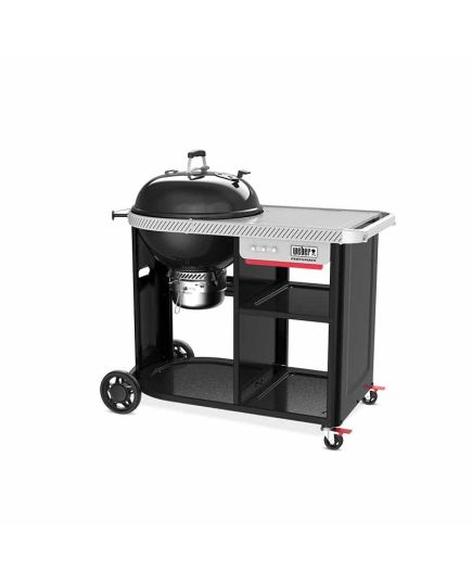 Η Weber Performer Premium Ø57 cm συνδυάζει την κλασική απόδοση της Weber Kettle με έξυπνο χώρο για προετοιμασία, σερβίρισμα και αποθήκευση των απαραίτητων αξεσουάρ ψησίματος. Διαθέτει premium καρότσι με δύο ράφια αποθήκευσης, πλαϊνό τραπέζι Weber Works για XL drop-in αξεσουάρ και πλαϊκή ράγα για snap-on αξεσουάρ. Η Performer Premium 57 cm είναι σχεδιασμένη για άνεση και αποτελεσματικότητα. Η πορσελάνινη επισμαλτωμένη κατασκευή και το σύστημα One-Touch καθαρισμού διευκολύνουν το ψήσιμο και τον καθαρισμό. Η ψησταριά διαθέτει GBS σχάρα, ειδικό άγκιστρο καπακιού και εύκολη μετακίνηση με 2 τροχούς και 2 κλειδώσιμους τροχούς.