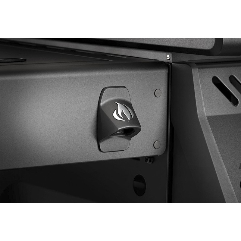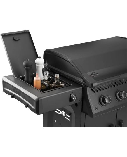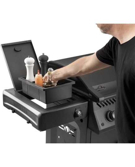 Το ενσωματωμένο ράφι με αποσπώμενο καλάθι σάς επιτρέπει να οργανώνετε άψογα τα υλικά και τα εργαλεία σας, ενώ τα πτυσσόμενα πλαϊνά ράφια και οι γάντζοι εργαλείων προσφέρουν ακόμα περισσότερη ευκολία. Η εργονομική πρόσοψη με λιποσυλλέκτη, το διπλό καπάκι Lift Ease και οι τροχοί με φρένο συμπληρώνουν μια εμπειρία BBQ που αγγίζει την τελειότητα.