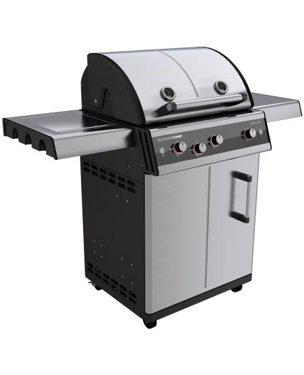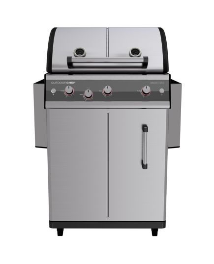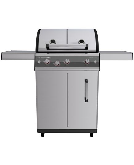 Επιπλέον, τα μοντέλα OUTDOORCHEF DUALCHEF διαθέτουν HEAT DIFFUSER, ο οποίος κατευθύνει τη θερμότητα στο περιστρεφόμενο καλάθι (δεν περιλαμβάνεται στο πακέτο) και έτσι μειώνει την κατανάλωση αερίου. Ταυτόχρονα, η συγκεντρωμένη θερμότητα εξασφαλίζει μια ωραία κρούστα στο κρέας ή στο ψητό κοτόπουλο. Το ΣΥΣΤΗΜΑ ΦΩΤΩΝ ΑΣΦΑΛΕΙΑΣ (SLS) στα περιστροφικά χειριστήρια ενεργοποιείται μόλις ανοίξει η βαλβίδα. Ο αισθητήρας φωτός προσαρμόζει αυτόματα την ένταση των φώτων LED στη φωτεινότητα του περιβάλλοντος. Τα στιβαρά, αναδιπλούμενα πλαϊνά ράφια προσφέρουν αρκετό χώρο για την προετοιμασία γευμάτων.