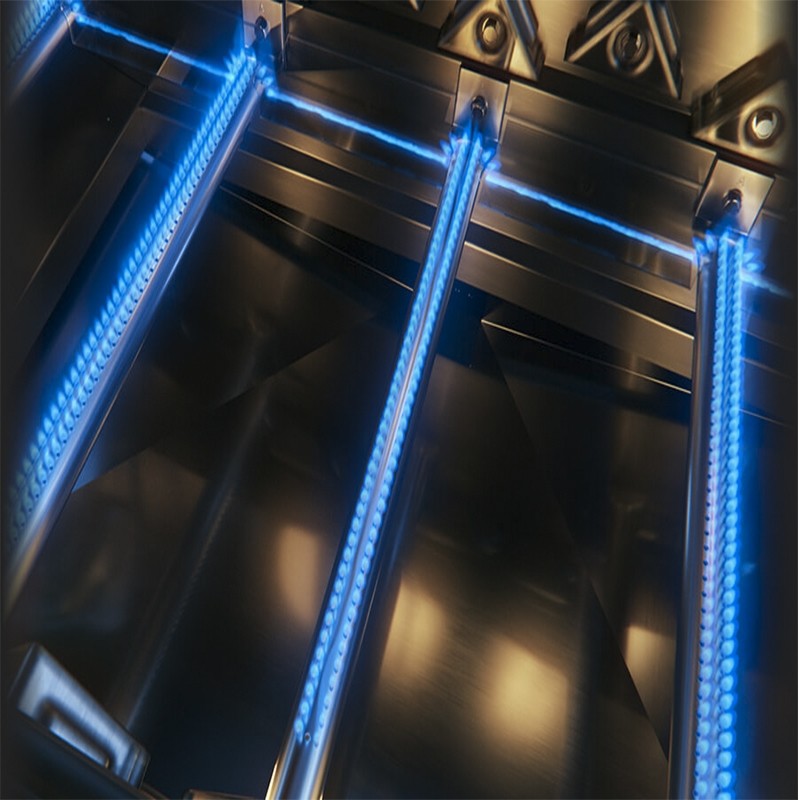 Ο οπίσθιος υπέρυθρος καυστήρας εξασφαλίζει ομοιόμορφο ψήσιμο μεγάλων κομματιών κρέατος καθώς το φαγητό περιστρέφεται στη σούβλα με αποτέλεσμα να ψήνεται ομοιόμορφα, παραμένοντας ζουμερό και κρατώντας τους χυμούς του, ενώ η εξωτερική επιφάνεια αποκτά μια υπέροχη τραγανή υφή. Ο πλευρικός καυστήρας υπέρυθρης ακτινοβολίας sizzle zone με ανοξείδωτη σχάρα προσφέρει εξαιρετικά υψηλές θερμοκρασίες για τέλειο "σφράγισμα" (searing) του κρέατος.