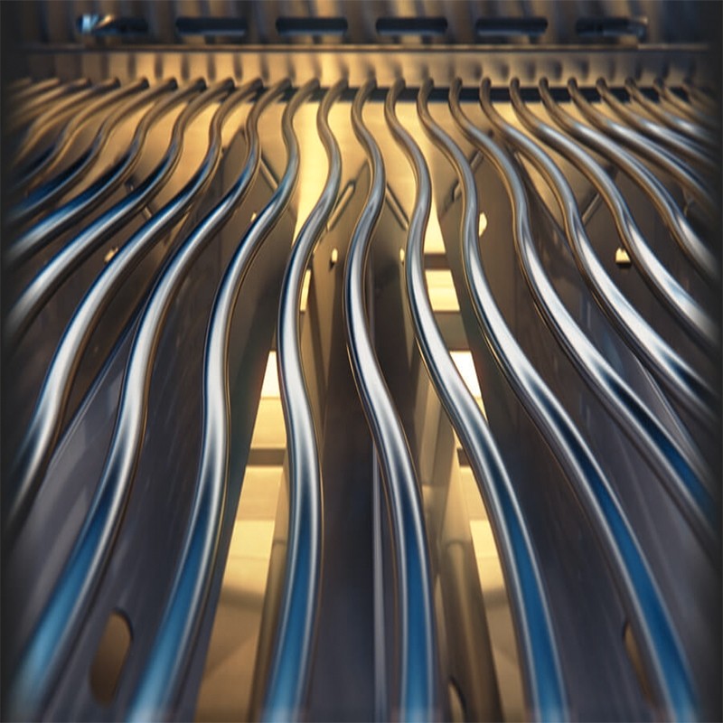 - Με ανοξείδωτες σχάρες ψησίματος στο χαρακτηριστικό κυμματιστό σχήμα της Napoleon.