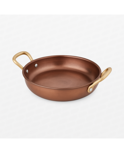 Σαγανάκι Ανοξείδωτο βαρέως τύπου σε Copper matt satin φινίρισμα με μπρούτζινα χερούλια. Οι ωφέλιμες διαστάσεις για το σαγανάκι είναι 14 x 4 CM. Οι διαστάσεις με τα χερούλια είναι 18 x 4 CM