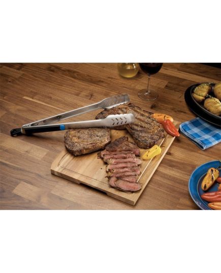 Η ειδικά σχεδιασμένη σπάτουλα επιτρέπει εύκολο γύρισμα του φαγητού από κάθε πλευρά, ενώ η τσιμπίδα με αυλακωτή επιφάνεια προσφέρει ακρίβεια και σταθερότητα στο κράτημα. Το έξυπνο σύστημα κλειδώματος της τσιμπίδας με μία απλή κίνηση εξασφαλίζει εύκολη αποθήκευση και μεταφορά. Οι εργονομικές λαβές με αντιολισθητική υφή προσφέρουν ασφαλές και άνετο κράτημα, ενώ η σπάτουλα λειτουργεί και ως ανοιχτήρι μπουκαλιών.