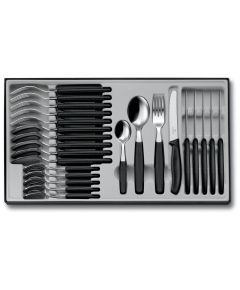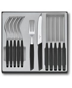 50792 (code) Μαχαιροπίρουνα μαύρα σετ 12 τμχ Swiss Classic 6.7233.12 Victorinox Η καλύτερη επιλογή για ένα καθημερινό σερβίτσιο! Κατασκευάζονται στην Ελβετία. Lifetime Guarantee Όλα τα μαχαίρια και εργαλεία Victorinox κατασκευάζονται από πρώτης ποιότητας ανοξείδωτο ατσάλι...