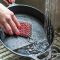 - Κατάλληλο για τον καθαρισμό μαντεμένιων σκευών και σκευών από ανθρακούχο χάλυβα (carbon steel).