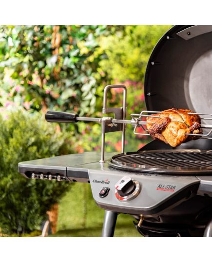 Το All-Star ανταποκρίνεται πραγματικά στο όνομά του – και το ίδιο ισχύει και για τα αξεσουάρ του. Με το All-Star rotisserie κατασκευασμένο από ανθεκτικό ανοξείδωτο ατσάλι, μπορείτε να μεγαλώσετε με το μπάρμπεκιου σας – ακόμα και όταν ο χώρος είναι εξαιρετικός. Χάρη στον ενσωματωμένο κινητήρα, η σούβλα περιστρέφεται συνεχώς, ώστε το φαγητό σας να μπορεί να μαγειρεύεται ομοιόμορφα. Αυτό το rotisserie ταιριάζει απόλυτα στο All-Star Gas ή στο All-Star Electric.