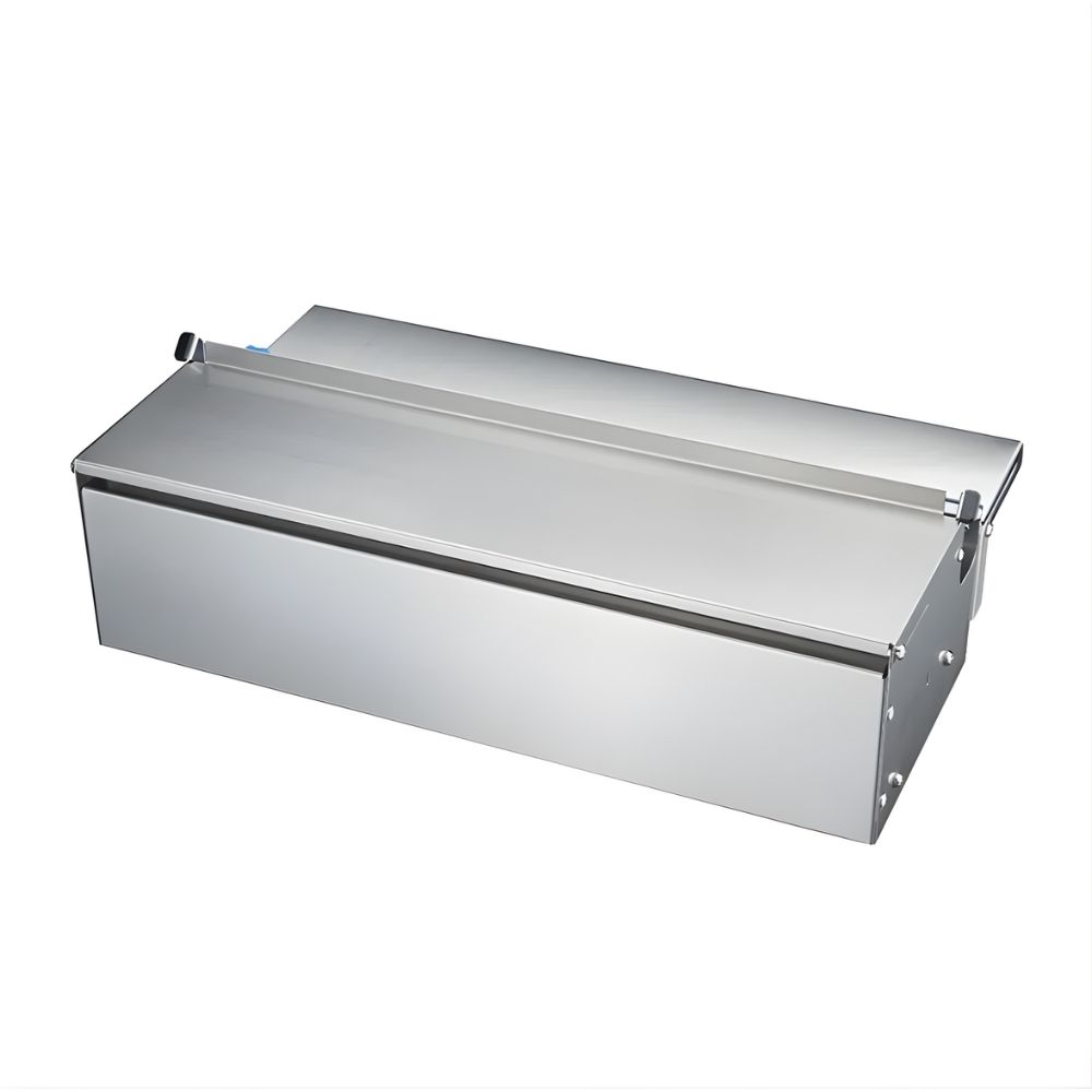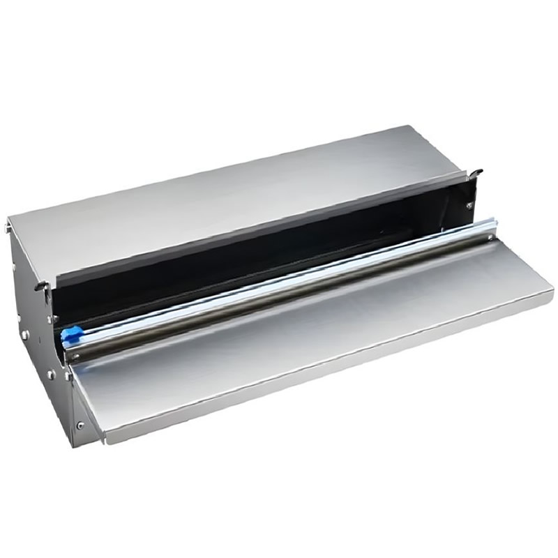 Χειροκίνητη συσκευή μεμβράνης κλειστού τύπου, κατασκευασμένη εξ ολοκλήρου από ανοξείδωτο ατσάλι για μέγιστη υγιεινή και αντοχή στον χρόνο. Ο κλειστός σχεδιασμός της προστατεύει το ρολό από εξωτερικούς ρύπους, διασφαλίζοντας την καθαρότητα της μεμβράνης.