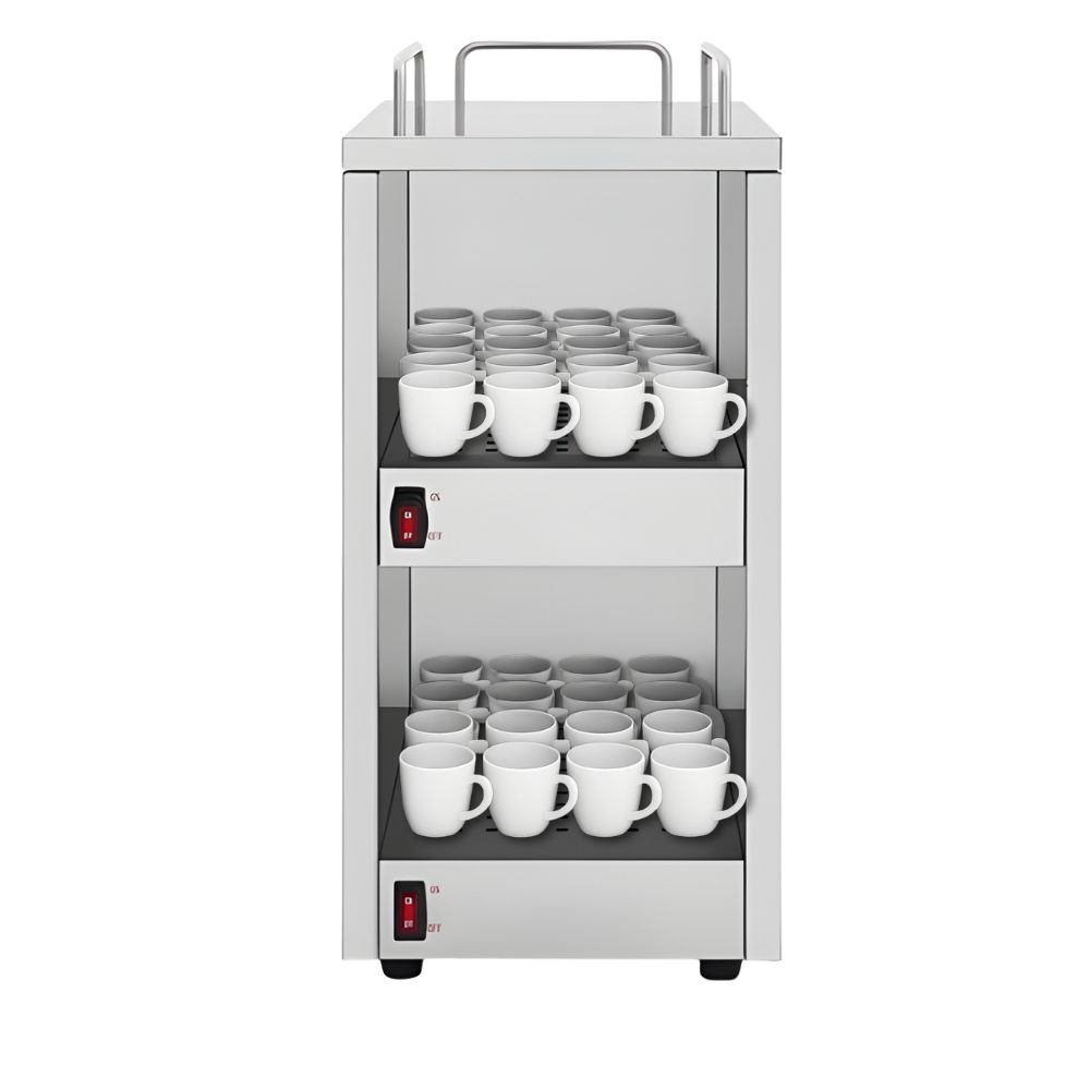 Ο επαγγελματικός θερμαντήρας φλιτζανιών MCW-2 είναι μια απαραίτητη συσκευή για κάθε καφετέρια, εστιατόριο ή γραφείο όπου σερβίρονται τακτικά ζεστά ροφήματα. Έχει σχεδιαστεί για να διατηρεί πολλά φλιτζάνια ή κούπες στην τέλεια θερμοκρασία για το σερβίρισμα ζεστών ροφημάτων, όπως καφέ, τσάι ή ζεστή σοκολάτα. Κατασκευή από ανοξείδωτο ατσάλι 201. Θερμοκρασία λειτουργίας 75°C.