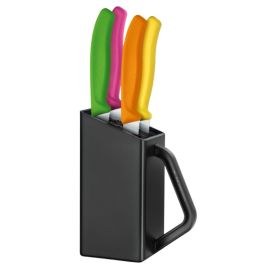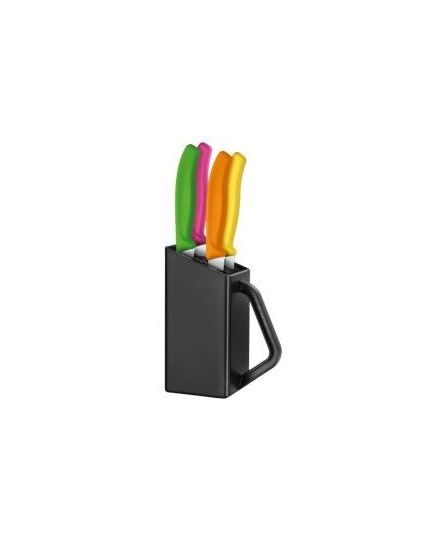 Η υψηλή λειτουργικότητα, η μοναδική αισθητική και η λεπτή εργονομία απαρτίζουν αυτή την πρακτική λύση αποθήκευσης των μαχαιριών σας. Απελευθερώστε τον πάγκο σας και αποθηκεύστε τα μαχαίρια σας εύκολα και με ασφάλεια, αυτή η μοναδική θήκη οργάνωσης διαθέτει ειδικά κατασκευασμένες υποδοχές για εύκολη εισαγωγή των μαχαιριών σας. Αυτό το πρακτικό σετ της Victorinox , διαθέτει μια ποικιλία ανοξείδωτων μαχαιριών, για όλες τις χρήσης κατασκευασμένα από υψηλής ποιότητας ανοξείδωτο ατσάλι, μεγάλης αντοχής και δύναμης για τα πιο απαιτητικά κοψίματα. Καθαρίζονται εύκολα, χωρίς να αφήνουν λεκέδες.
