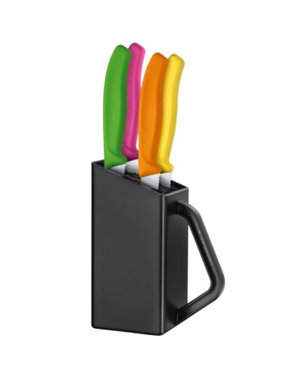 Μπλοκ μαύρο 4 steak μαχαιριών με χρωματιστές λαβές Swiss Classic -6.7126.4C1- Victorinox