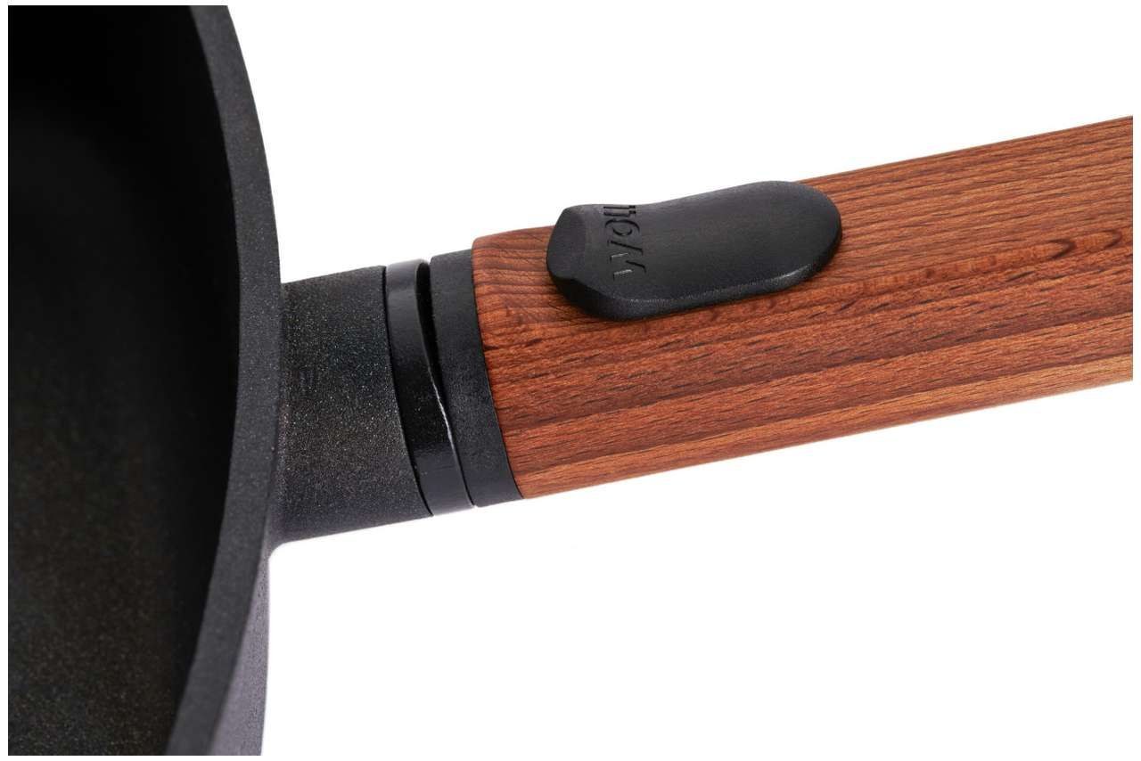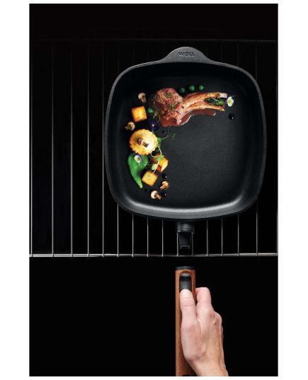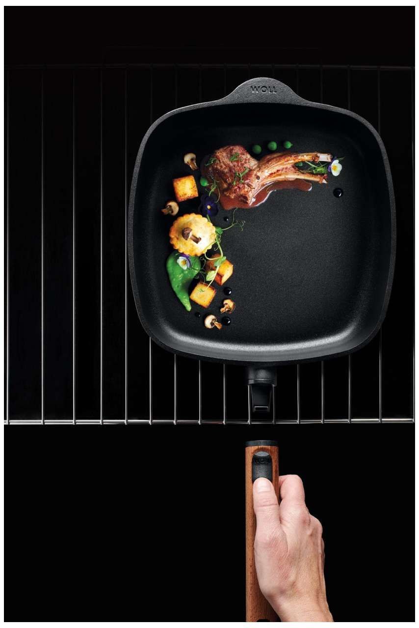 Η Woll φημίζεται για τις αποσπώμενες λαβές των σκευών της, που προσφέρουν πολλά πλεονεκτήματα στον χρήστη. Χωρίς τη λαβή, το τηγάνι χωράει αβίαστα στον φούρνο, στον νεροχύτη και στο πλυντήριο πιάτων, και είναι εύκολο να τοποθετηθεί και να στοιβαχτεί σχεδόν σε κάθε ντουλάπι.