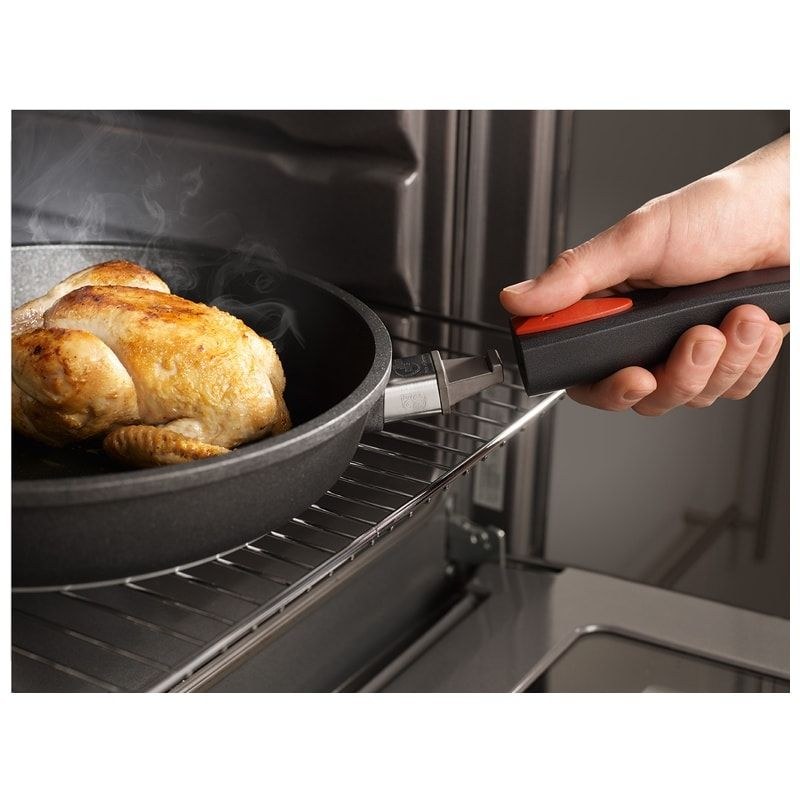 Οι αποσπώμενες λαβές σας διευκολύνουν και είναι πρακτικές και ασφαλείς, μπορείτε τις αφαιρέσετε και να βάλετε το σκεύος στο φούρνο. Αφαιρούνται εύκολα και βοηθούν την εξοικονόμηση χώρου τόσο στην αποθήκευση όσο και στο πλυντήριο. Οι αποσπώμενες λαβές δεν είναι θερμοανθεκτικές και πρέπει να αφαιρεθούν πριν από τη χρήση του σκεύους στο φούρνο.