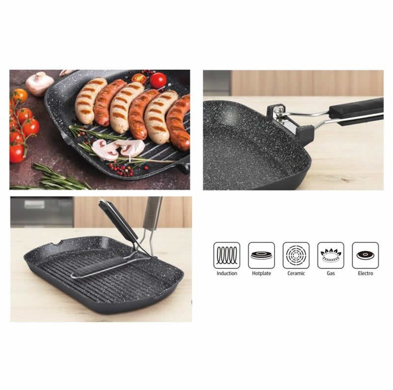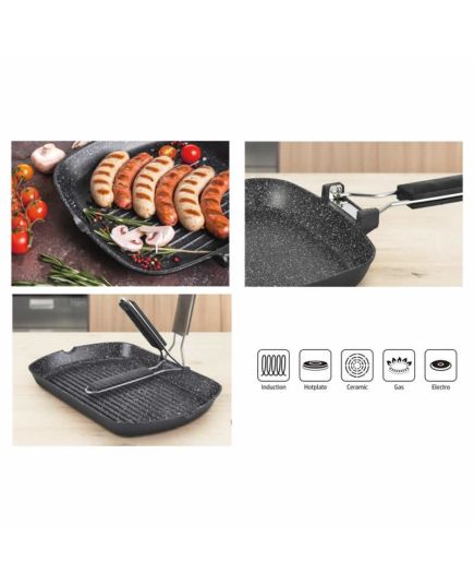 ΤΗΓΑΝΙ GRILL 34x24 CM ΑΝΤΙΚΟΛΛΗΤΙΚΟ ΑΛΟΥΜΙΝΙΟΥ INDUCTION ΜΕ ΣΠΑΣΤΗ ΛΑΒΗ